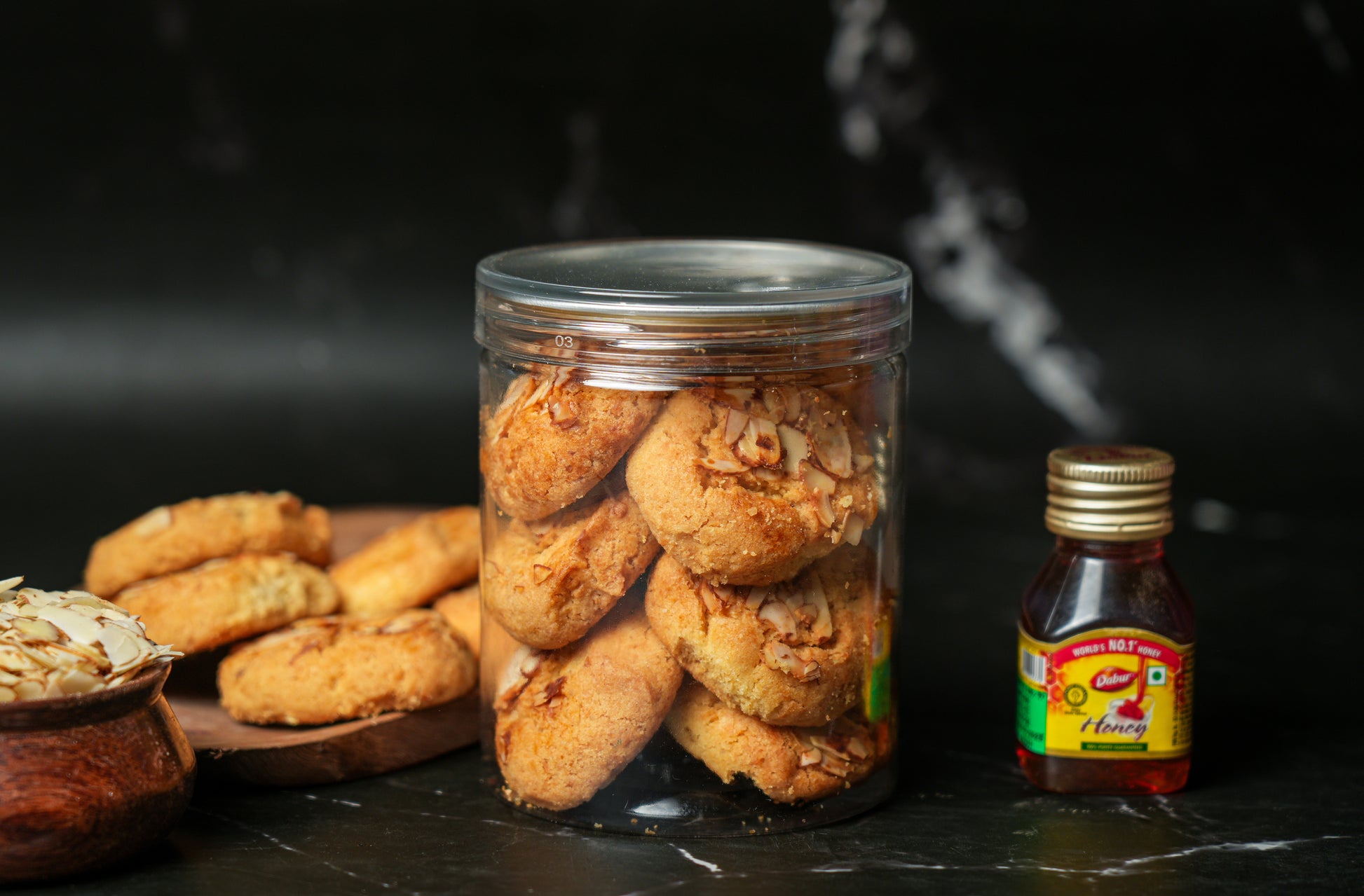Golden, buttery perfection with a delightful crunch — Nutty Butty Cookies are handcrafted with rich Amul butter, silky Milkmaid, and a touch of milk, blended into fine flour. Each cookie is sprinkled with juicy kismis and delicate coconut, offering a warm, nutty sweetness in every bite.